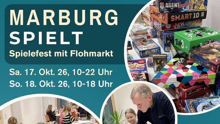 Das Spielfest mit Flohmarkt öffnet am 17.10.26, 10 Uhr, seine Türen im KA.RE. Marburg. Alle Spielbegeisterten jeder Altersgruppe sind dazu herzlich eigeladen. Entdecken Sie neue Spiele oder alte wieder neu. Organisiert wird das Event von dem Verein Die Spielebrücke e.V. in Kooperation mit KA.RE. connect und der KHG Marburg.